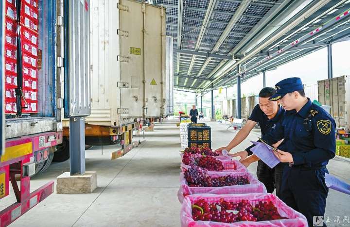 Recently, at the Yuanjiang China-Laos Railway Cross-Border Logistics Industrial Park, staff from the Yuanjiang Workstation of Yuxi Customs were carefully inspecting exported fruits. It is reported that the first phase of the industrial park has completed the construction of infrastructure such as a customs inspection area, a comprehensive building, an intelligent system, and supporting roads within the park. In June 2024, the first customs workstation operating on a regular basis in Yunnan Provincewas inaugurated here, undertaking the local customs inspection business for exported agricultural products such as fruits and vegetables to Thailand. As of June 30, 2025, it has completed a total of 4,488 vehicle-loads of centralized inspection for fruits exported to Thailand, totaling 94,700 tons with a value of 730 million yuan; it has also fostered dozens of relevant enterprises, and registered 38 outbound fruit orchards covering an area of 61,000 mu.